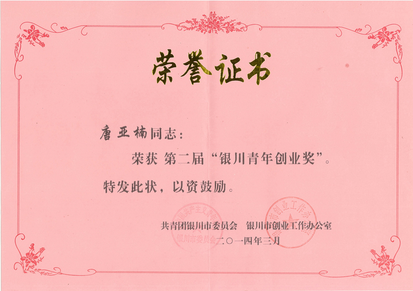 第二屆“銀川青年創(chuàng)業(yè)獎”